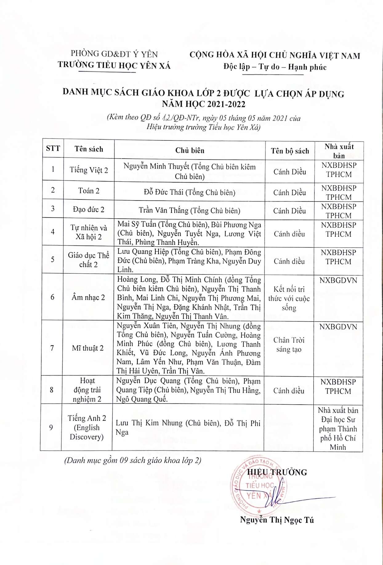 Danh mục sách giáo khoa lớp 2 được lựa chọn áp dụng từ năm học 2021-2022